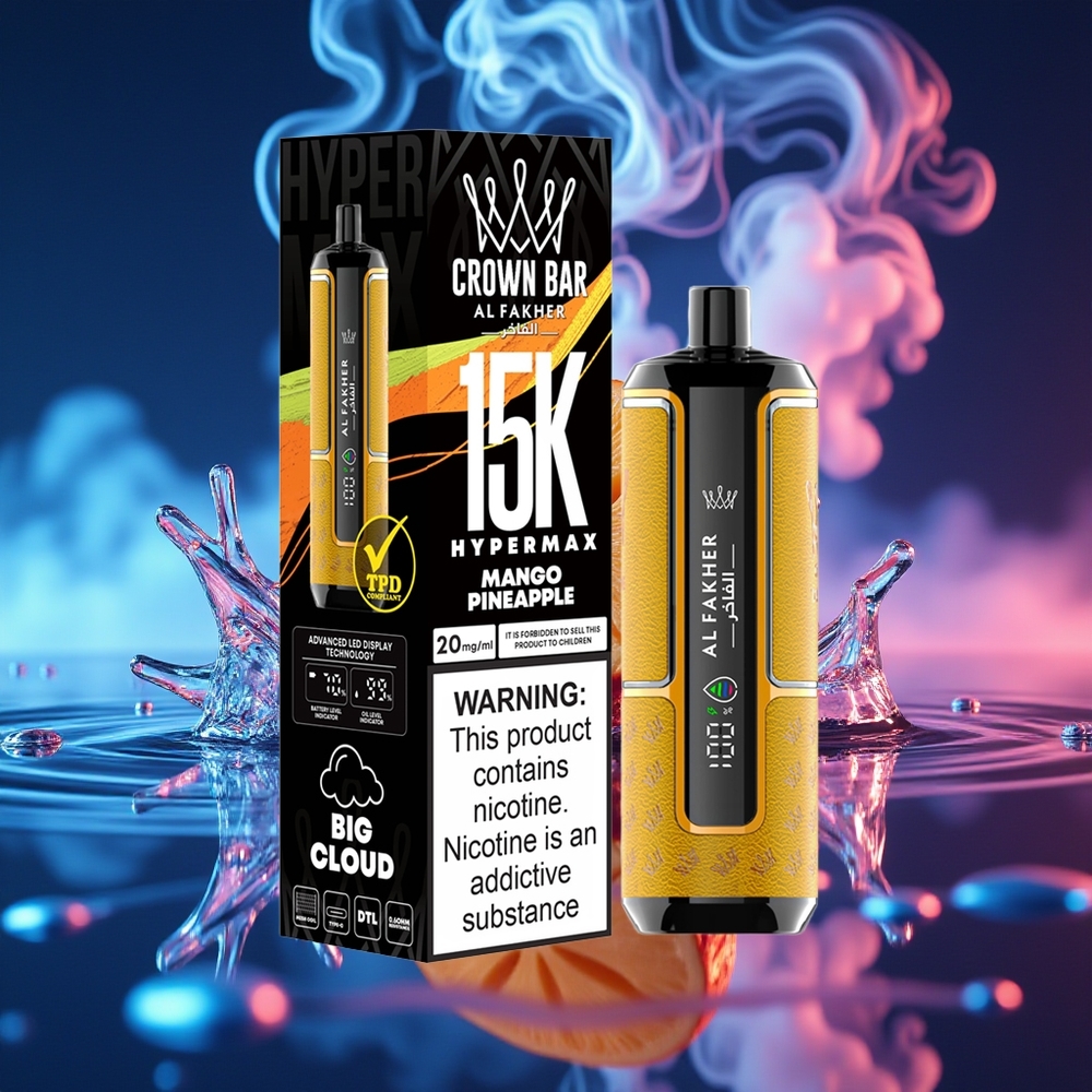 גלו את החוויה החדשה עם Al Fakher Crown Bar 15K Hypermax מכשיר אידוי חד פעמי Kit - עוצמה, אריכות ימים ונוחות במכשיר אחד!