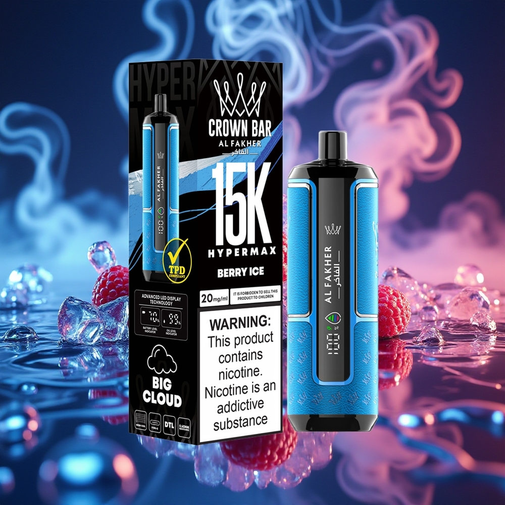 גלו את החוויה החדשה עם Al Fakher Crown Bar 15K Hypermax מכשיר אידוי חד פעמי Kit - עוצמה, אריכות ימים ונוחות במכשיר אחד!