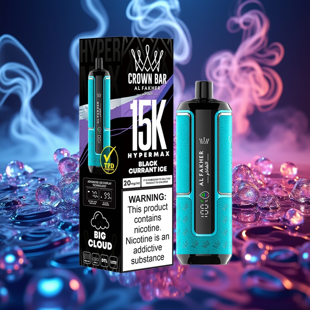 גלו את החוויה החדשה עם Al Fakher Crown Bar 15K Hypermax מכשיר אידוי חד פעמי Kit - עוצמה, אריכות ימים ונוחות במכשיר אחד!