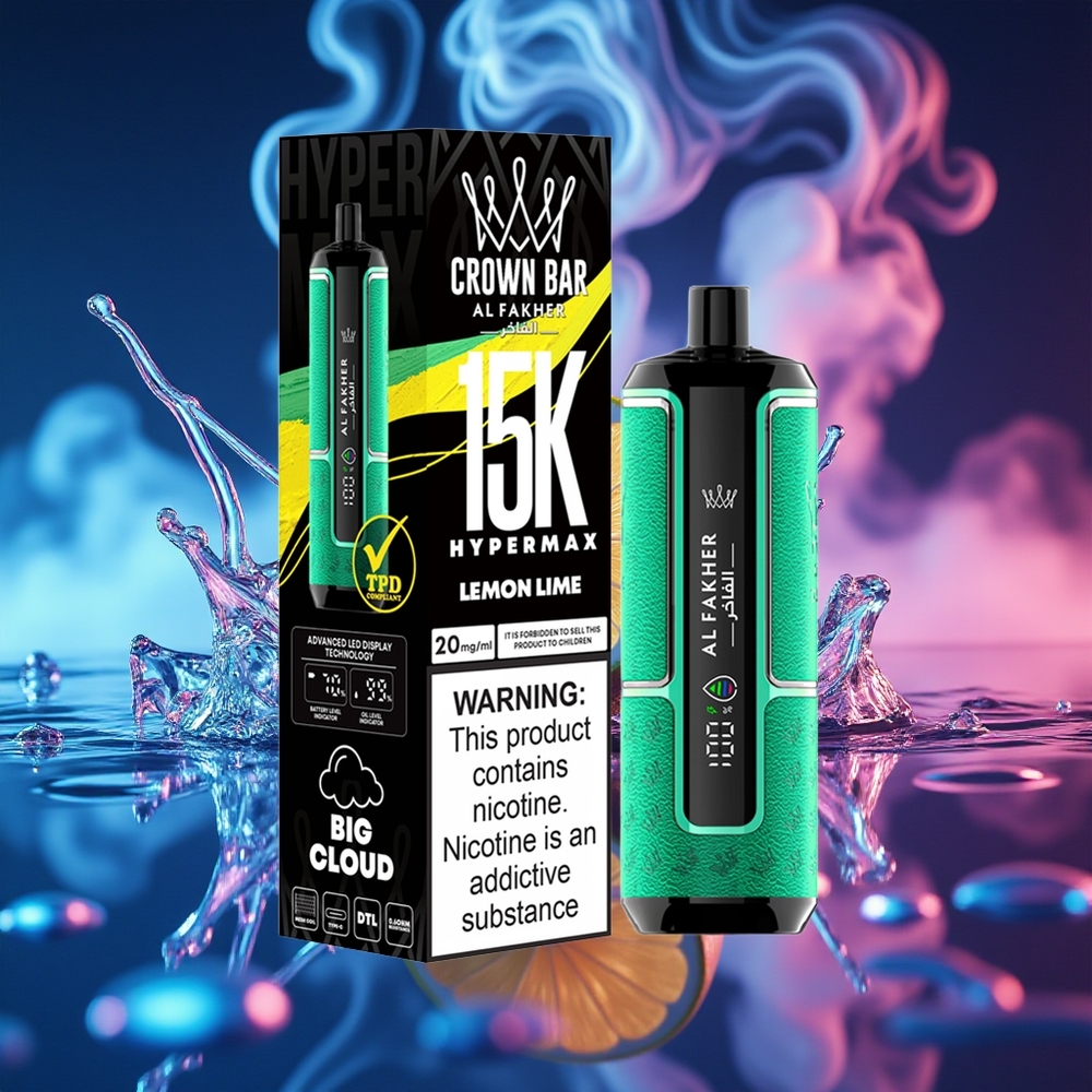 גלו את החוויה החדשה עם Al Fakher Crown Bar 15K Hypermax מכשיר אידוי חד פעמי Kit - עוצמה, אריכות ימים ונוחות במכשיר אחד!