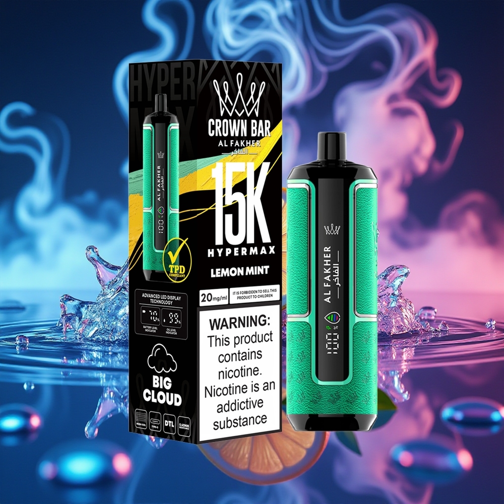 גלו את החוויה החדשה עם Al Fakher Crown Bar 15K Hypermax מכשיר אידוי חד פעמי Kit - עוצמה, אריכות ימים ונוחות במכשיר אחד!