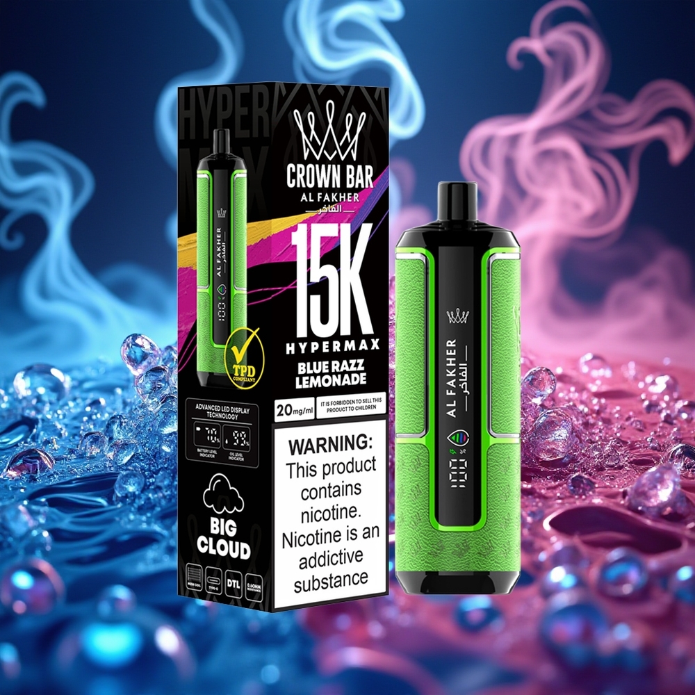 גלו את החוויה החדשה עם Al Fakher Crown Bar 15K Hypermax מכשיר אידוי חד פעמי Kit - עוצמה, אריכות ימים ונוחות במכשיר אחד!