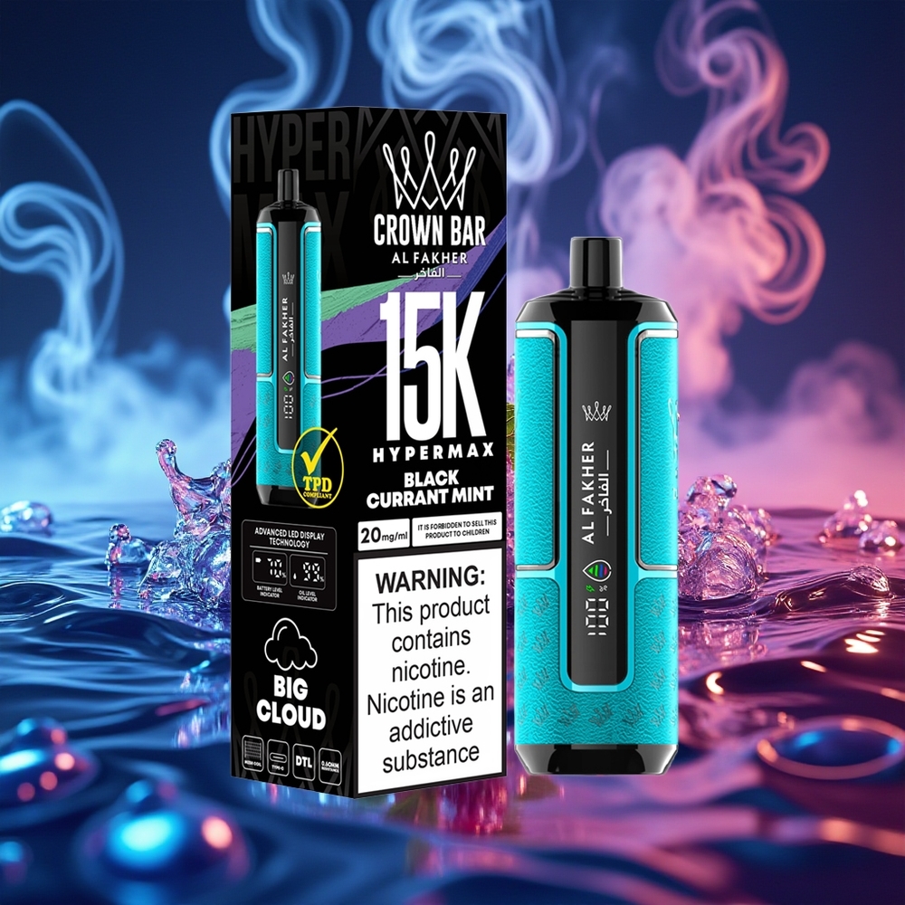 גלו את החוויה החדשה עם Al Fakher Crown Bar 15K Hypermax מכשיר אידוי חד פעמי Kit - עוצמה, אריכות ימים ונוחות במכשיר אחד!