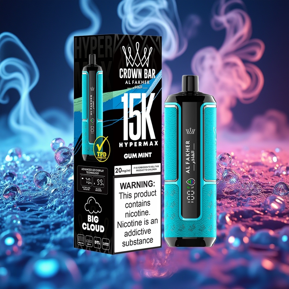 גלו את החוויה החדשה עם Al Fakher Crown Bar 15K Hypermax מכשיר אידוי חד פעמי Kit - עוצמה, אריכות ימים ונוחות במכשיר אחד!