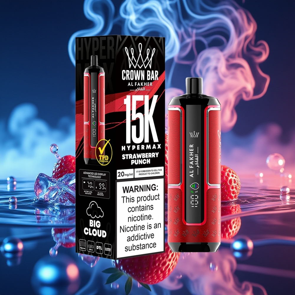 גלו את החוויה החדשה עם Al Fakher Crown Bar 15K Hypermax מכשיר אידוי חד פעמי Kit - עוצמה, אריכות ימים ונוחות במכשיר אחד!